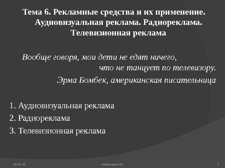 Тема 6. Рекламные средства и их применение.