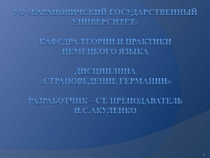 Classical German Philosophy Plan: 1. German Classical