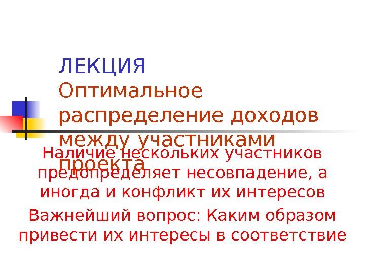 ЛЕКЦИЯ Оптимальное распределение доходов между участниками проекта.