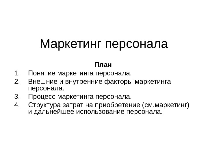 Маркетинг персонала План 1. Понятие маркетинга персонала.