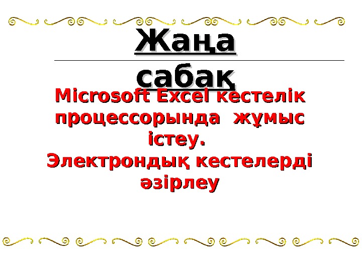 Жаңа сабақ Microsoft Excel кестелік процессорында жұмыс істеу.
