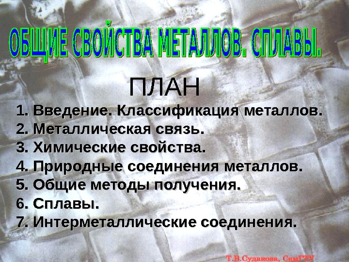 ПЛАН 1. Введение. Классификация металлов. 2. Металлическая связь.