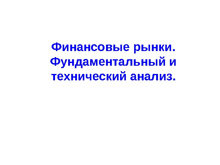 Финансовые рынки. Фундаментальный и технический анализ. Тема