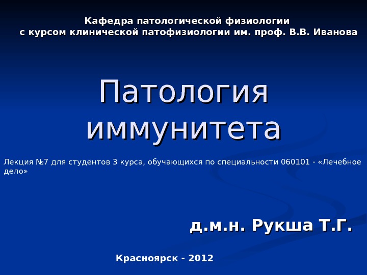 Патология иммунитета д. м. н. Рукша Т. Г.