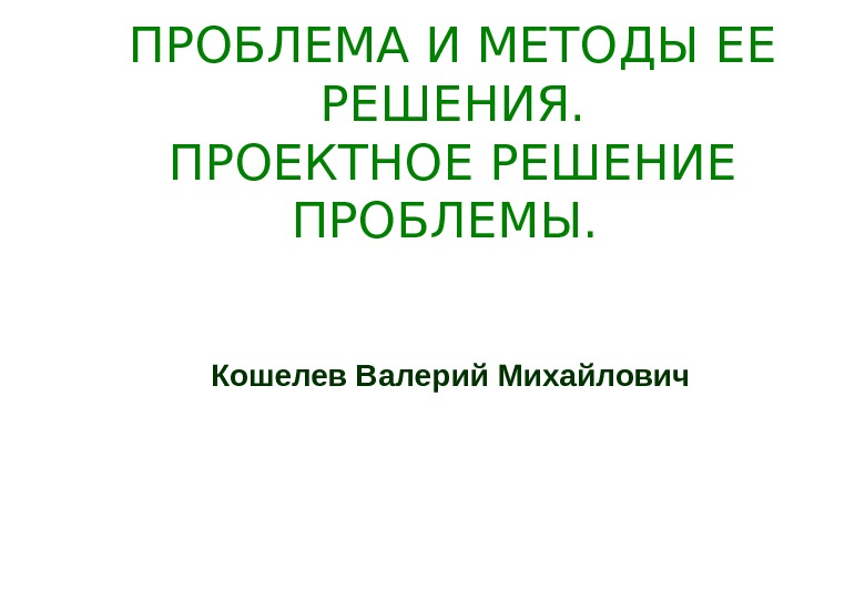 ПРОБЛЕМА И МЕТОДЫ ЕЕ РЕШЕНИЯ. ПРОЕКТНОЕ РЕШЕНИЕ ПРОБЛЕМЫ.