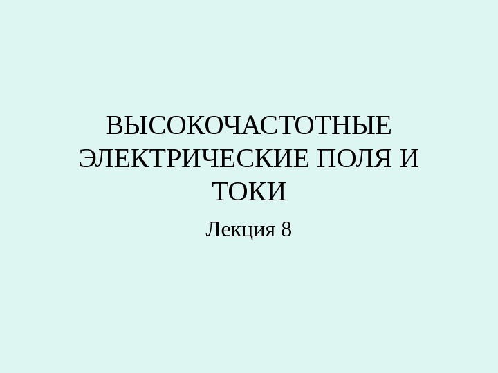 ВЫСОКОЧАСТОТНЫЕ ЭЛЕКТРИЧЕСКИЕ ПОЛЯ И ТОКИ Лекция 8