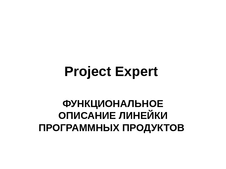 Project Expert ФУНКЦИОНАЛЬНОЕ ОПИСАНИЕ ЛИНЕЙКИ ПРОГРАММНЫХ ПРОДУКТОВ