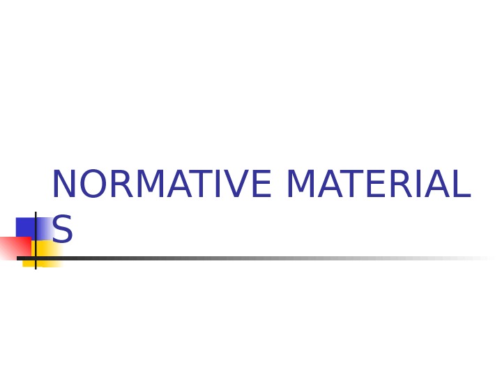 NORMATIVEMATERIAL S I. The essence andvariety ofnormativematerials