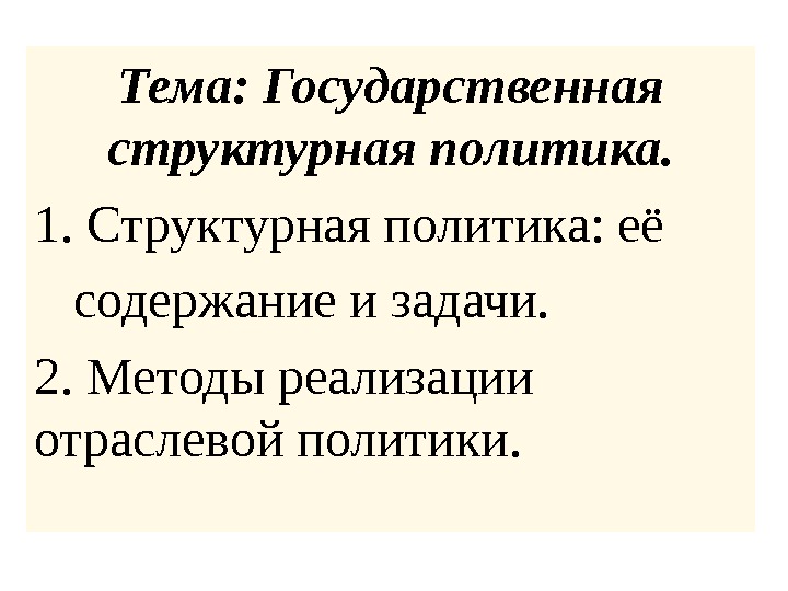 Тема: Государственная структурная политика. 1. Структурная политика: её