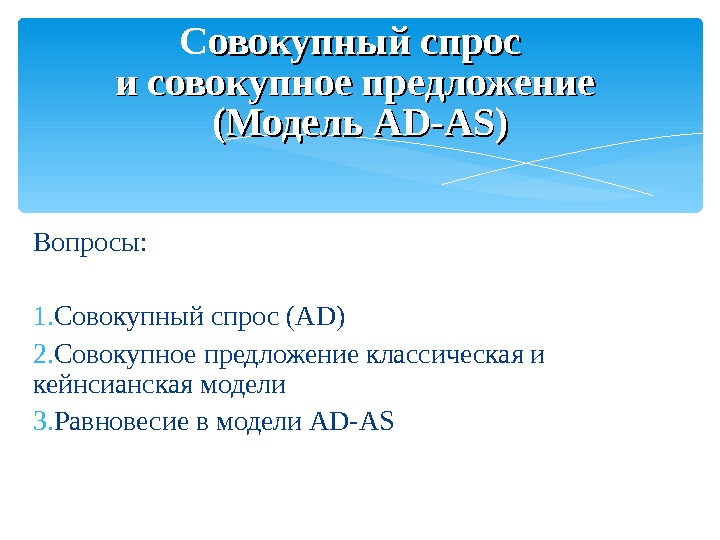 Вопросы: 1. Совокупный спрос (AD) 2. Совокупное предложение