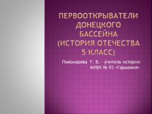 Первооткрыватели донецкого бассейна (История Отечества 5 класс) Пономарева