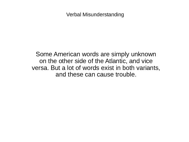 Verbal Misunderstanding Some American words are simply unknown