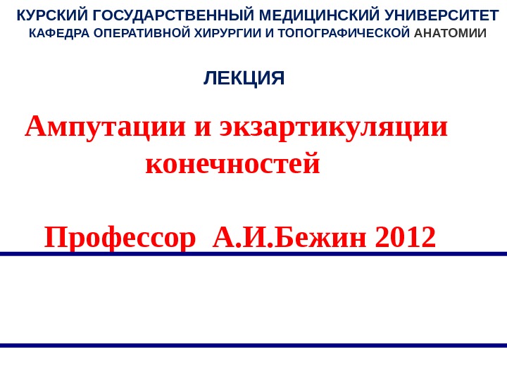 КУРСКИЙ ГОСУДАРСТВЕННЫЙ МЕДИЦИНСКИЙ УНИВЕРСИТЕТ КАФЕДРА ОПЕРАТИВНОЙ ХИРУРГИИ И