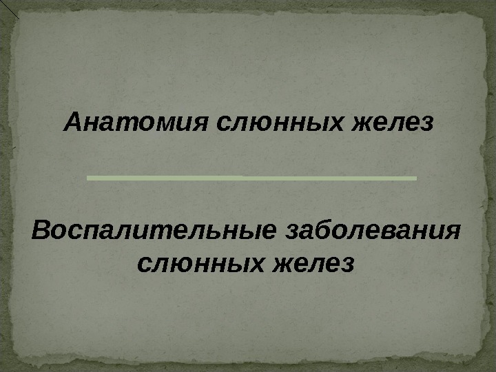 Анатомия слюнных желез Воспалительные заболевания слюнных желез