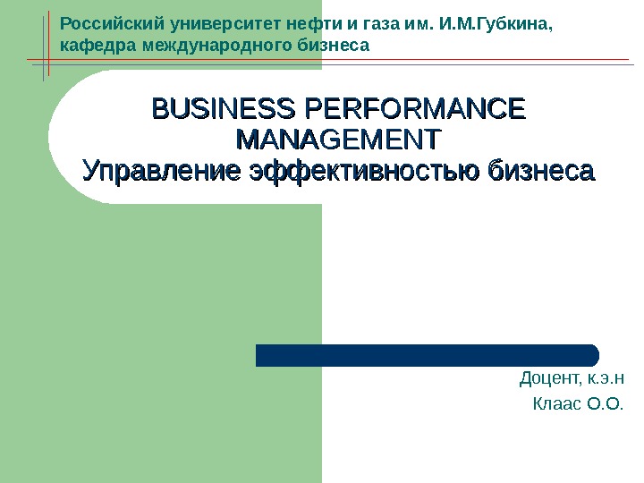 BUSINESS PERFORMANCE MANAGEMENT Управление эффективностью бизнеса Доцент, к.