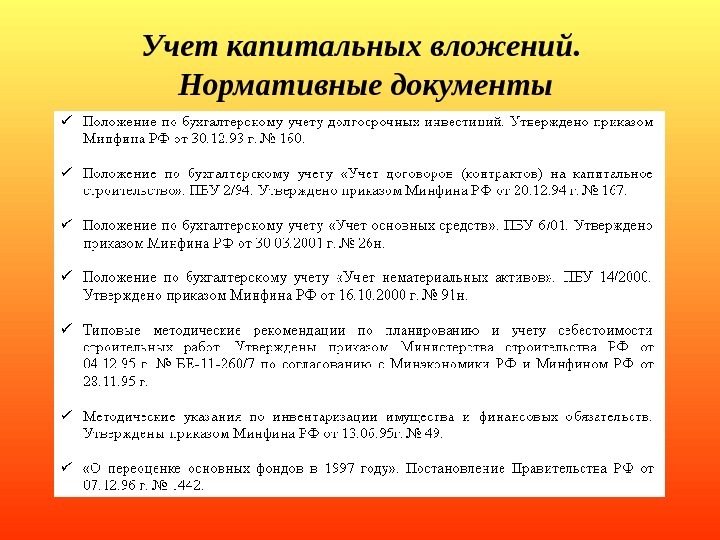 Учет капитальных вложений. Нормативные документы Долгосрочные
