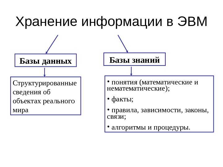 Хранение информации в ЭВМ Базы данных Структурированные сведения