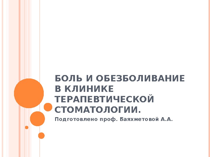 БОЛЬ И ОБЕЗБОЛИВАНИЕ В КЛИНИКЕ ТЕРАПЕВТИЧЕСКОЙ СТОМАТОЛОГИИ.