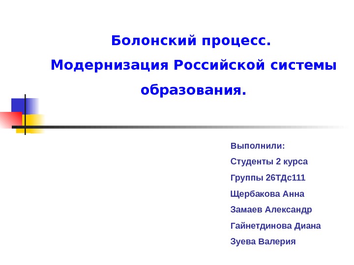 Болонский процесс. Модернизация Российской системы образования. Выполнили: