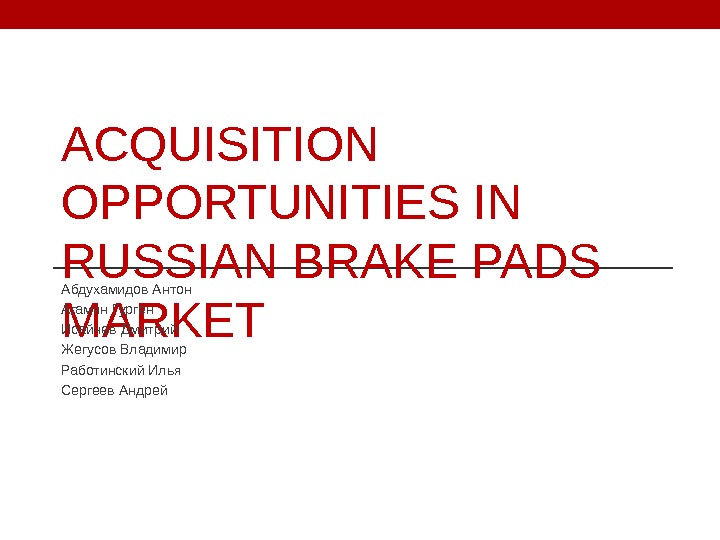 ACQUISITION OPPORTUNITIES IN RUSSIAN BRAKE PADS MARKETАбдухамидов Антон