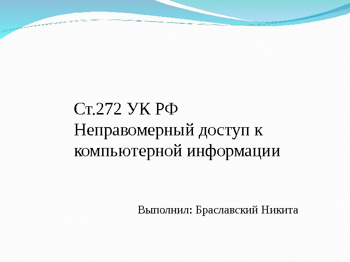 Ст. 272 УК РФ Неправомерный доступ к компьютерной