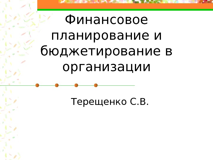 Финансовое планирование и бюджетирование в организации Терещенко С.