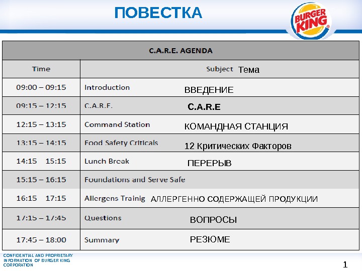 CONFIDENTIAL AND PROPRIETARY INFORMATION OF BURGER KING CORPORATION