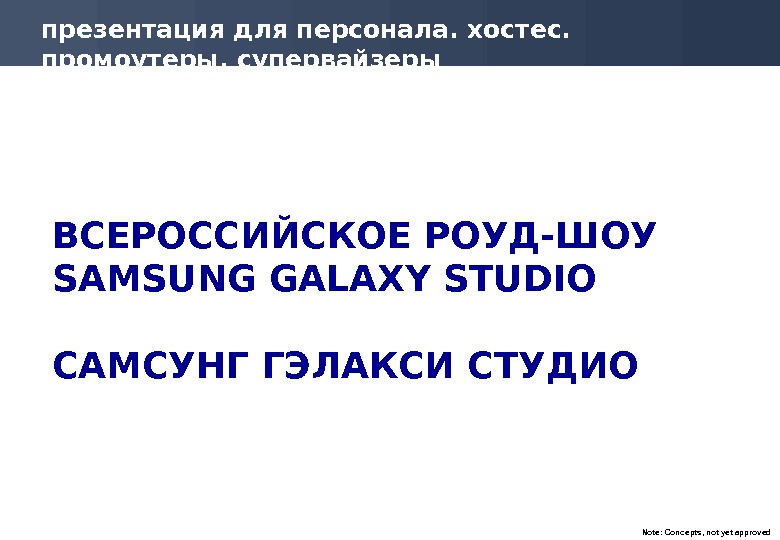 Note: Concepts, not yet approvedпрезентация для персонала. хостес.