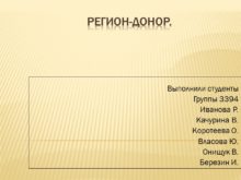 Регион-донор. Выполнили студенты Группы 3394 Иванова Р. Качурина