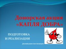 Донорская акция «КАПЛЯ ДОБРА» ПОДГОТОВКА И РЕАЛИЗАЦИЯ Докладывает
