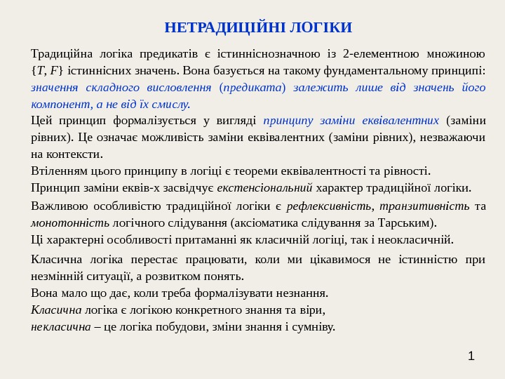 1 НЕТРАДИЦІЙНІ ЛОГІКИ Традиційна логіка предикатів є істинніснозначною