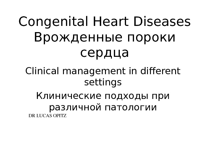 Congenital Heart Diseases Врожденные пороки сердца DRLUCASOPITZClinical management