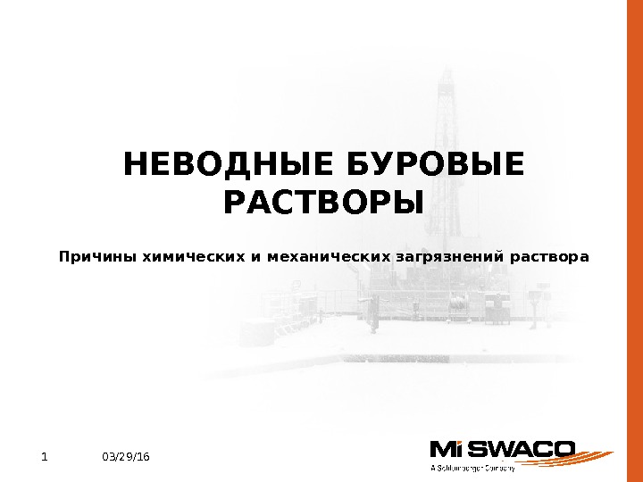 1 03/29/16 НЕВОДНЫЕ БУРОВЫЕ РАСТВОРЫ Причины химических и