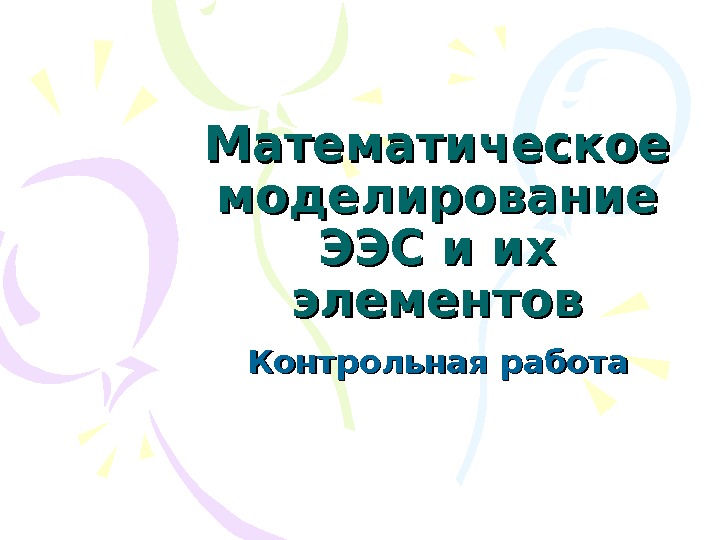Математическое моделирование ЭЭС и их элементов Контрольная работа