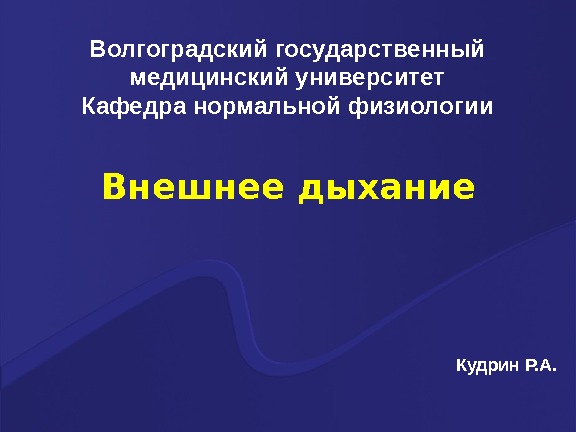 Волгоградский государственный медицинский университет Кафедра нормальной физиологии Внешнее