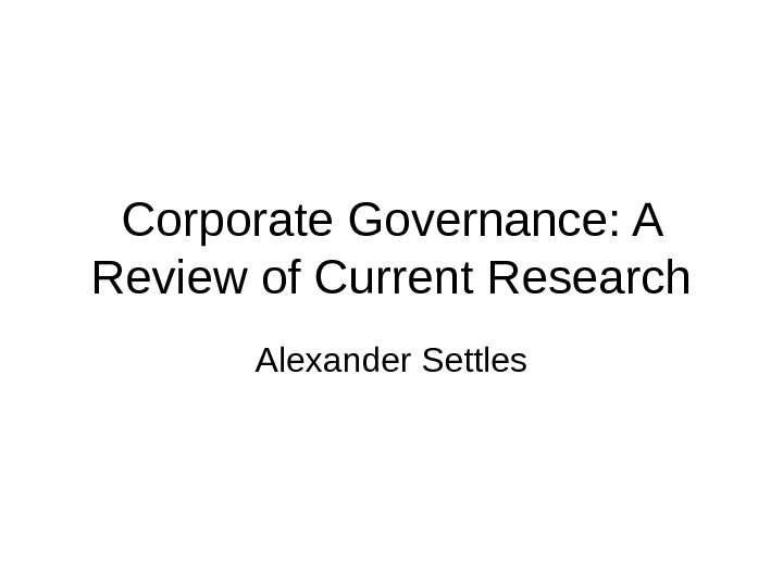Corporate Governance: A Review of Current Research Alexander