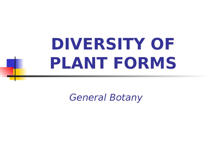 DIVERSITY OF PLANT FORMS General Botany Classification