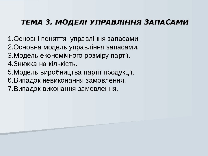 ТЕМА 3. МОДЕЛІ УПРАВЛІННЯ ЗАПАСАМИ 1.