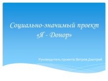 Социально-значимый проект «Я — Донор» Руководитель проекта: Ветров