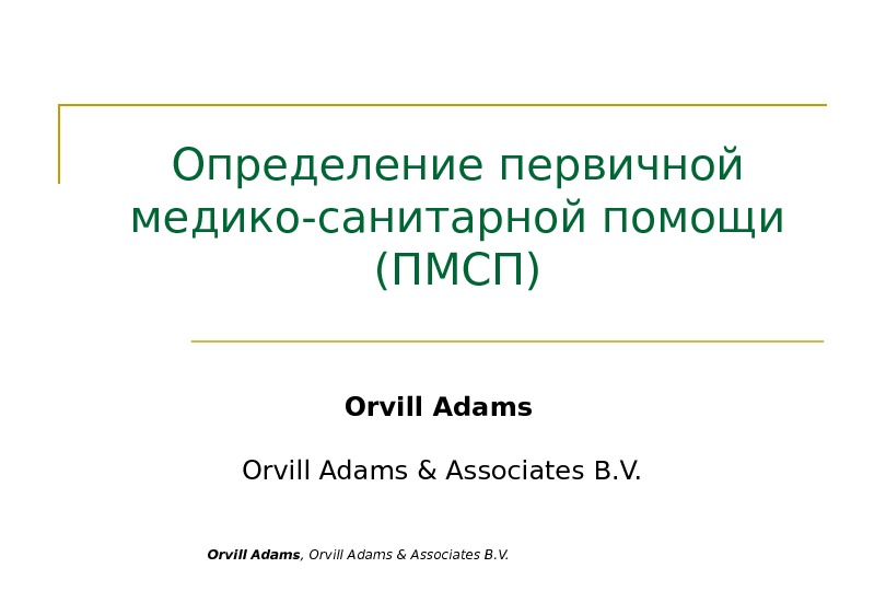 Orvill Adams , Orvill Adams & Associates B.