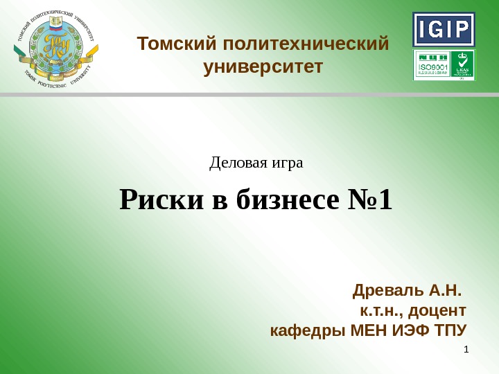 1 Деловая игра Риски в бизнесе № 1