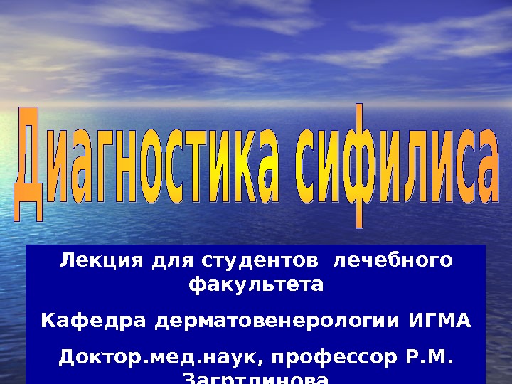 Лекция для студентов лечебного факультета Кафедра дерматовенерологии ИГМА