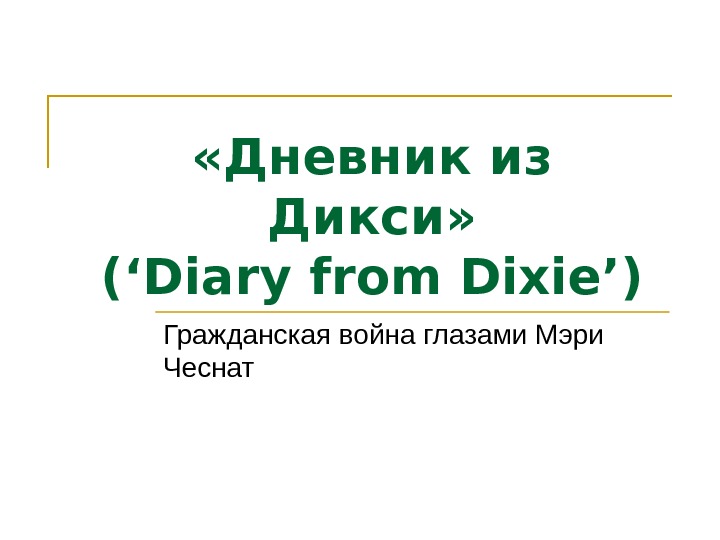 «Дневник из Дикси» ( ‘Diary from Dixie’)
