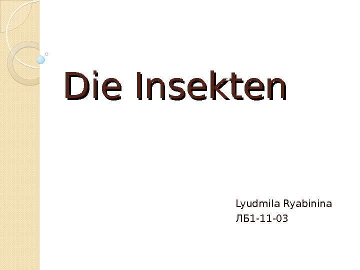 Die Insekten Lyudmila Ryabinina ЛБ 1 -11 -03