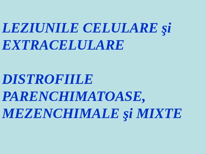 LEZIUNILE CELULARE şi EXTRACELULARE DISTROFIILE PARENCHIMATOASE, MEZENCHIMALE