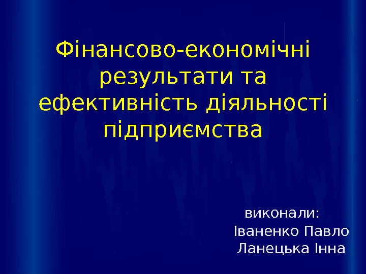 Фінансово-економічні результати та ефективність діяльності підприємства виконали: Іваненко