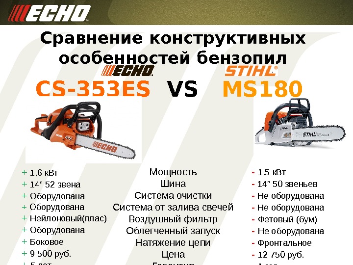 Сравнение конструктивных особенностей бензопил CS-353 ES VS