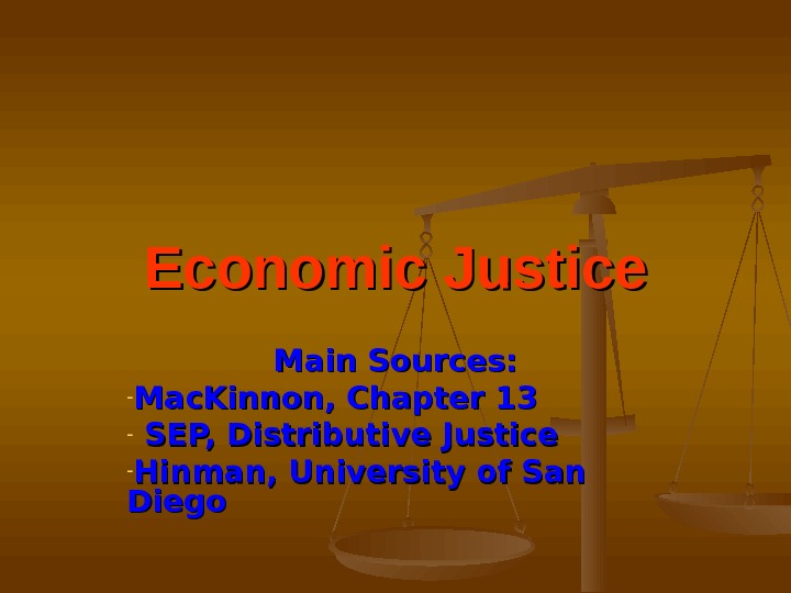 Economic Justice Main Sources: — Mac. Kinnon, Chapter