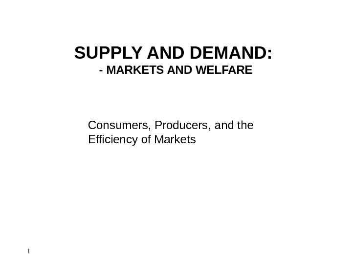 SUPPLY AND DEMAND: — MARKETS AND WELFARE