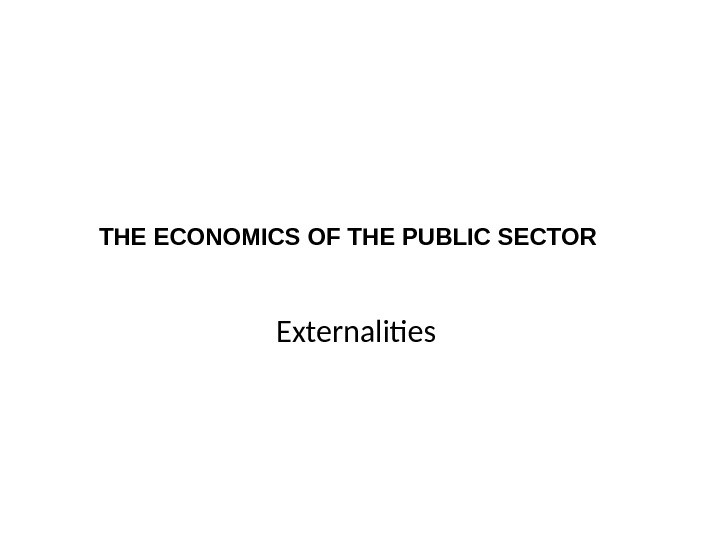 THE ECONOMICS OF THE PUBLIC SECTOR Externalities